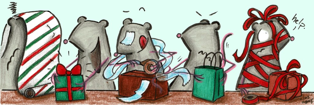 Last year’s Christmas card: “Gingerbread Snack Attack.” Don’t pre-eat all your Christmas goodies! One more day!