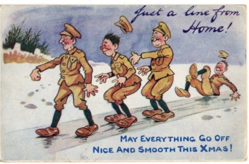 Bonus trivia: this card was was inspired by a Christmas card from World War I, below: