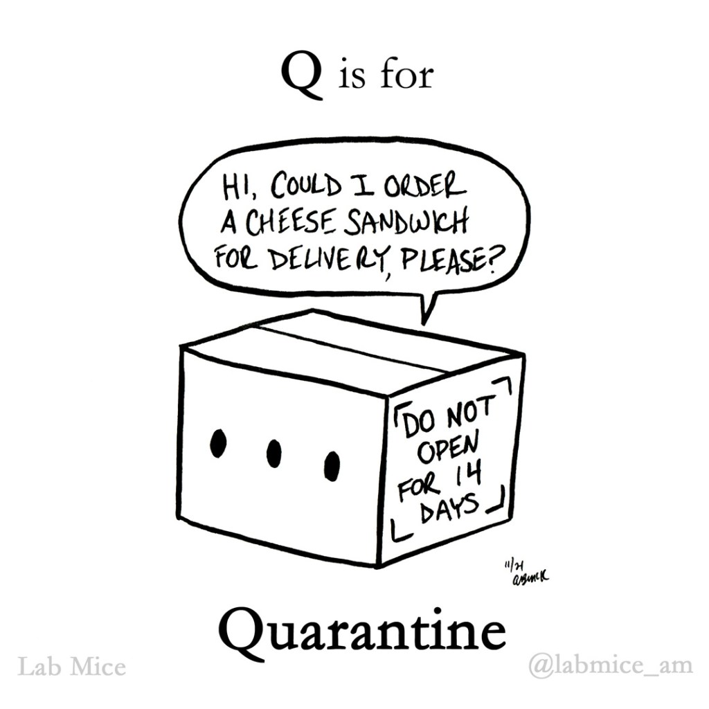 I’m ten letters away from completing Q is for Quarantine (of course, then comes putting everything together into an actual book), which has been two-and-a-half-years in the making. I started this project for myself, to keep myself amused while struggling with long covid in March 2020, and I’m finishing it for myself. I have so many projects from 2020 left undone, that finally completing one will be a relief, and a real accomplishment. But I also realize that its subject has long since turned it into a “pandemic souvenir” (yikes–what an idea!) rather than an observation of current events, and its completion is relevant only to me. Kindly, and unlike in the comic, no one has actually said this to me! Even if they had, I’m still having fun, and am happy to complete this project entirely for my own satisfaction. But I decided to put a sarcastic, pessimistic spin on the feeling, and created this demotivational poster-style comic.